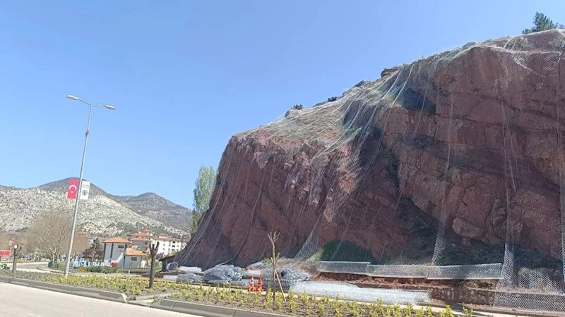 Nallıhan'da ilçe girişindeki kayalıklar güvenli hale getiriliyor