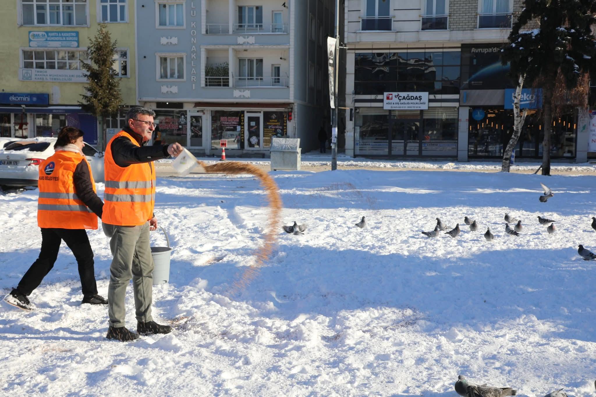 Sert kış şartlarının hüküm sürdüğü Kars’ta, belediye ekipleri dilsiz dostlarımızı yalnız bırakmıyor. Veteriner İşleri Müdürlüğü koordinasyonunda yürütülen çalışma kapsamında, kuşların yoğun olarak bulunduğu parklar, bahçeler ve yeşil alanlara düzenli olarak yem bırakılıyor. Doğal dengenin korunmasını amaçlayan bu uygulama, şehrin dört bir yanındaki stratejik noktalarda titizlikle sürdürülüyor.